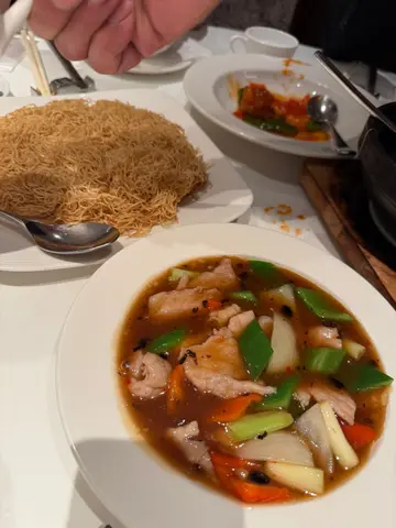 庆祝父亲节👨同父亲大人梗系食佢最钟意嘅中菜揾咗呢间环境唔错嘅中菜厅脆皮乳猪烧得唔错,皮脆肥肉啱啱好😆每人两件过到口瘾唔会食漏鲍参翅肚羹,唔会太水,饮落有胶质嘅感觉同出面唔同,呢度系咕噜虾球都唔错,又唔系净系食肉嘅选择个人最钟意酥炸沙井蚝,香口唔多炸粉唔油腻入面仲系好似新鲜蚝味多汁👍原来个豉汁肉片炒面系炸面饼,惊喜惊喜😍整体唔错,价钱偏中上,不过不失为坐低好好倾偈聚会嘅好地方👌👌👌👌