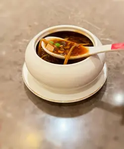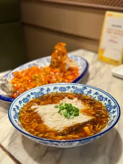 这里装修格局非常之古色古香,有木色系列和很多粉红色的花树衬托下,令食客感到非常温暖嘅感觉。正宗酸辣汤🥣正宗的酸辣汤讲究的是五味平衡,酸和辣是主角,但绝不会过分到掩盖其他味道。它的目的是开胃、解腻、暖身,而不是一味地追求刺激。材料有虾仁🍤、豆腐、云耳、肉丝、青豆等。「酸、辣、咸、鲜、香」五味俱全,口感层次丰富,汤汁浓淡适中,喝下去暖心暖胃。招牌东坡肉🥩经过数小时的炖煮,猪油已经大量析出,剩下的部分呈现半透明状,口感糯而不腻,真正达到入口即化的境界,而不是油腻的肥油。因为有肥肉和猪皮的油脂滋润,加上长时间的焖煮,瘦肉变得极其酥软,丝毫不柴,用筷子轻轻一夹就能分开。而猪皮表面充满胶质,Q弹软糯,黏唇感十足。熏鱼菜饭🍚这是一款非常经典、充满家常风味的中式菜饭。上海的熏鱼虽然叫「熏」,但实际是油炸后浸渍的做法。咸甜交织酱香浓郁,外酥里嫩骨刺酥香,内里的鱼肉却依然保持鲜嫩多汁,因为卤汁会迅速锁住肉汁。蟹粉小笼包🦀(五件)第一啖涌入口中的是滚烫、金黄色的汤汁。蟹粉(蟹黄和蟹肉)两者结合天然的甘甜味道,夹著猪肉馅料托起了蟹粉的鲜美,让味道更加丰满和谐。而小笼包皮极薄却有韧性,配埋香醋和姜丝,酸味能解腻,并能提升和凸显鲜味,让蟹粉的风味更上一层楼。鲜肉锅贴🥟外酥内嫩一口爆汁,咬破酥脆的底部,穿过柔韧的面皮,里面是鲜嫩多汁的肉馅。汤汁通常是肉馅本身的水分、油脂以及拌馅时打入的高汤,在蒸煎过程中释放出来。酒酿小丸子🍡酒酿的独特发酵是一种温和、醇厚且清新的发酵香气,淡淡的酒香类似于米酒,但更柔和。小丸子在咀嚼后软糯Q弹,口腔中会回荡出淡淡的糯米香气。撒上干桂花让整体风味变得非常高级。…查看更多