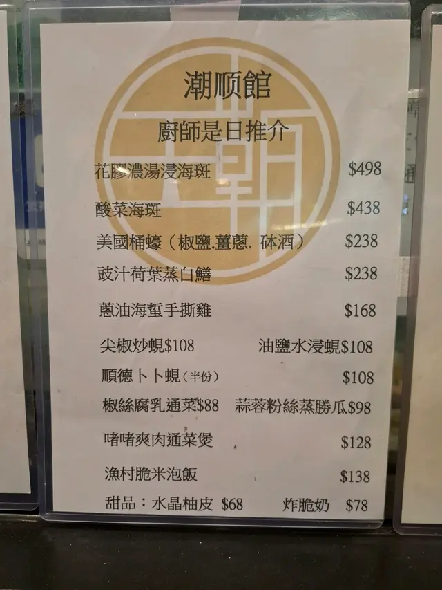 朋友推介咗呢间潮州餐厅,谂住试吓潮州地道滋味!餐厅主打冻乌头、鹅片、蚝仔粥同埋出名嘅鹅肝,仲有隔离枱嘅鳝煲好似好吸引,餐牌选择多样,价钱中规中矩。食材新鲜度真系有惊喜,特别系冻乌头同蚝仔粥,鲜甜滑口;鹅片同鹅肝味道浓郁,鳝煲软腍入味,正常水准但唔算突出。🍴🥢环境方面就稍为失望,地方有啲逼窄,枱同枱之间好近,气氛有啲混乱。服务态度更系痛点,阿姐为咗翻枱有时会用手段赶客,感觉唔太舒服;埋单时仲话卡机坏咗,迫用八达通或现金,朋友话呢招用咗几个月,体验大打折扣。💸😣总括嚟讲,王朝潮顺馆食材新鲜系优点,但环境同服务一般,建议有心理准备先去,食潮州菜仲有其他更好选择!⭐️⭐️⭐️🌑…查看更多