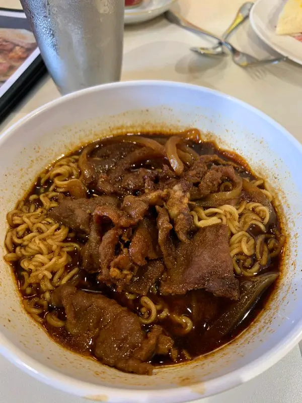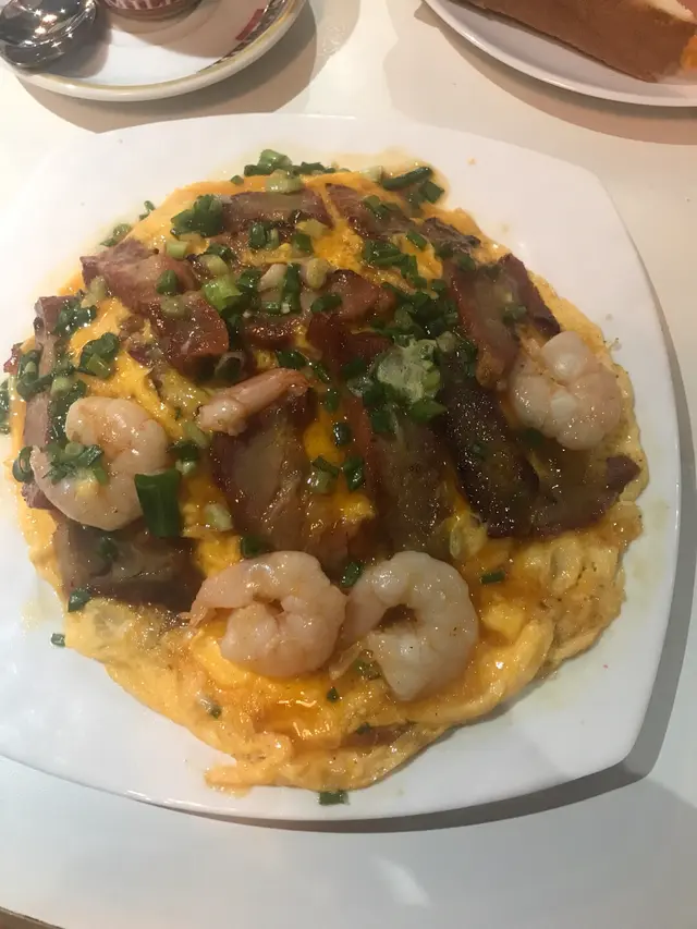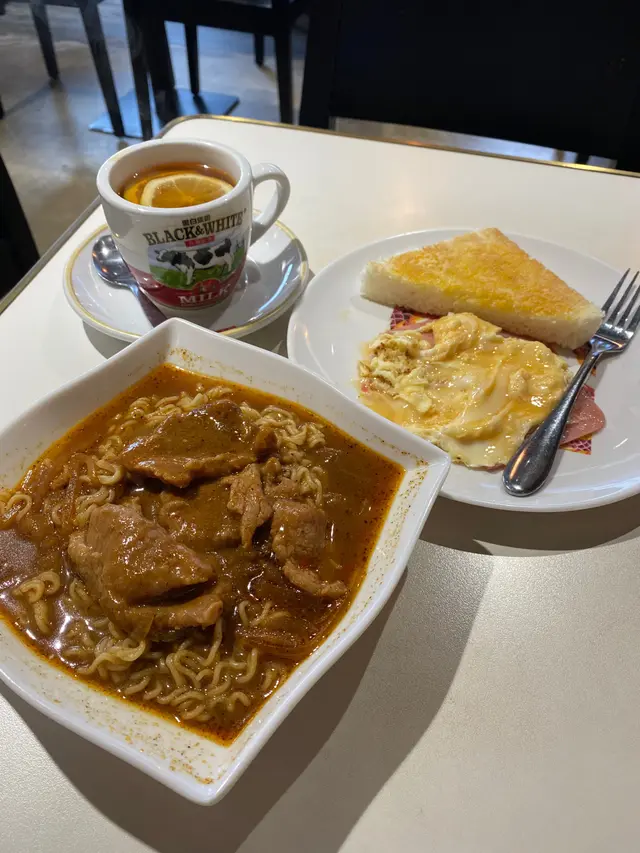 今日去到大圍朋友講有間叫王牌早餐不錯而且仲要勁近大圍站所以我們就過來吃,來到時不多人,坐下見到午餐都多選擇,我就叫了一份沙爹牛肉特濃湯底公仔麵配火腿炒蛋熱檸檬茶,價錢四十四元少貴,沙爹牛肉麵來到顏色的確幾濃,食落去幾香但沙爹味又不叫十分濃,比平時的味少濃,湯不叫十分多,所以比較快冇湯,麵比較淋身,牛肉都多又大片,牛肉味一般,炒蛋有點老了同凍,多士好味軟熟又多牛油,飲品正常不錯,因為成份份量都不少,食完都幾飽肚,價錢都可接受。…查看更多