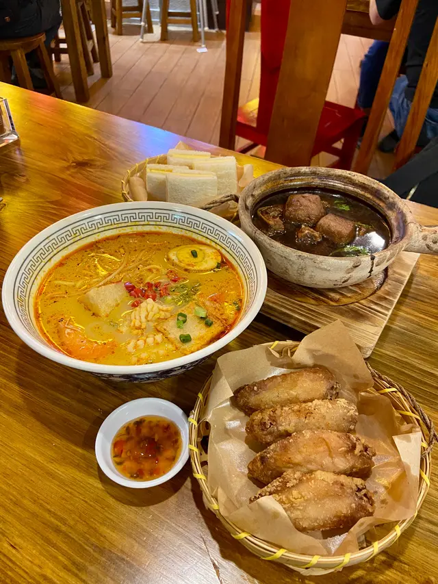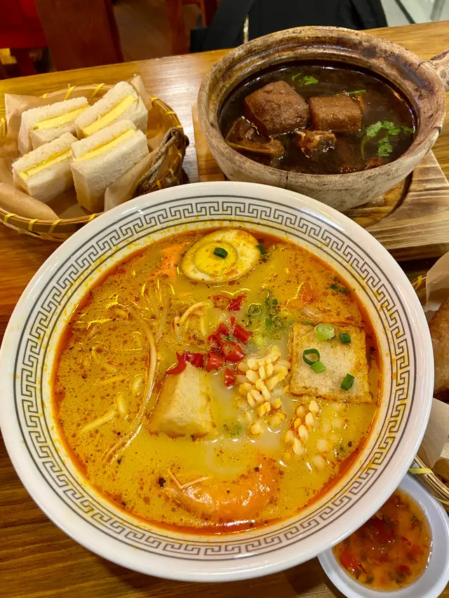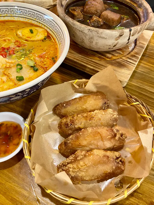 青衣開左間性價比高嘅星馬菜餐廳,天花板仲掛左燈籠可以打卡🏮🔸海鮮蝦油麵叻沙海鮮叻沙的湯底是由椰奶、香料、辣椒熬煮而成,層次豐富散發著濃郁的香氣,帶有椰香微辣幾惹味😋配料豐富有蝦、魷魚、魚片、半隻蛋,叫左油麵都幾掛汁,仲有粿條/米粉可以選擇🔸昭通醬炸雞翼即叫即炸熱辣辣好香口,雞翼唔細隻外皮金黃酥脆,炸得恰到好處,保持了雞翼的多汁口感,每一口都能感受到外層的香脆和內部肉質的鮮嫩👍🏻🔸砂鍋肉骨茶第一啖試左湯底先,飲落滿滿藥材香氣回甘,藥材味道不會過濃容易入口,秋冬飲一流補身又暖胃☺️入面有排骨、豆卜、腐皮,排骨軟腍輕鬆脫骨🔸鮮油咖央多士烘底多士夾咖央醬同牛油,邪惡但好味查看更多