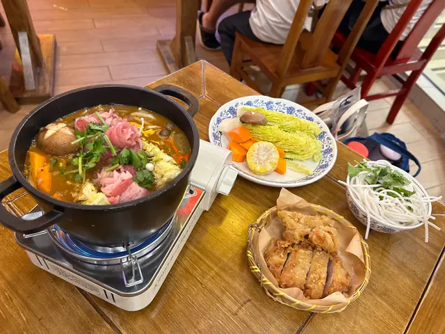 好耐冇去過青衣啦,有日去行完好攰經過長發廣場見到間裝修幾靚既餐廳好多燈籠同街頭裝飾 仲有一人火鍋 好吸引呀 就同朋友入去試吓叫左個 一人小鍋酸辣金湯肥牛小鍋 轉沙爹鍋底 $ 68.00加配 蔬菜拼盤 $19.00另外叫咗兩個小食酥炸豬扒$39.00酸汁檸檬蝦$45.00小鍋細細個都有8-9片牛肉仲有d蔬菜同菇我地加左一份菜所以都好豐富呀個沙嗲湯底好濃味 平平哋食得好滿足小食既豬扒唔硬 仲好脆添 $39咁大份其實好抵檸檬蝦係個涼菜黎,酸中微微辣都幾過癮蝦肉都大大隻幾新鮮呢個價錢自己買餸都差不多要咁上下價格平又好食 唔怪得咁多人幫襯啦玖子茶 (長發廣場) (青衣)青衣担杆山路6號長發廣場2樓213及215號舖查看更多