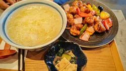 呢间「玥」都开左差唔多一年,成日经过都见到有人食,今日终于去试下。我哋星期六下午1:00左右入去,等左10分钟就有位,都几多人食,环境几好。我地四位用餐,一人一个餐,包前菜同蜂蜜绿茶(冻/热),转特色野饮每杯减$10, 野食好多款,价钱ok。🔅浓豆乳汤鲜腐竹担担面🔅招牌牛肉面🔅安格斯卤牛肉饭配兰王溏心醉蛋(蛋有少少酒)配白饭🔅纯素豆乳汤面🔅小食:黄金荞麦盐酥鸡(冇影到相😅)✅唔逐一讲,我食招牌牛肉面,个汤底几清甜,牛𦟌几淋👍🏼入味。配菜用西兰花芯比较少见,好嫩,面既份量亦唔少。✅我饮下我妈淡豆乳汤,汤底都几浓豆乳味。✅个小食黄金荞麦盐酥鸡值得一提,个甜酸汁好开胃好夹d鸡!盐酥鸡炸到咸香,又脆又唔会好咸。✅其他果几样我亲戚们食左都话OK, 我睇落去卖相都唔差,呢间野系有少少意料之外好食😋🤵🏻♀️服务唔错,后生女有礼貌,每份餐都逐盘放返去相应既客人面前,唔系求其放,要求佢地比多份餐具都唔会黑你面。(其实呢啲系好基本既服务态度…唔知点解香港餐饮业食客咁可怜😔,要觉得呢啲应该赞)不过星期六人多,食完过多阵就要交枱,唔算好催既,香港地食野文化系咁🤷🏻♀️,冇得坐耐啲倾计💬。…查看更多