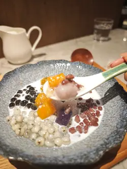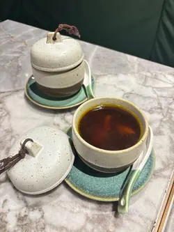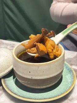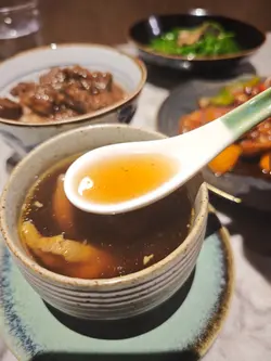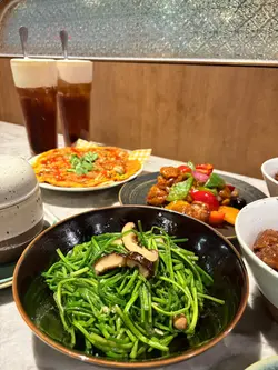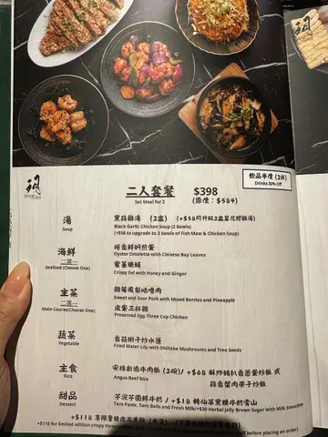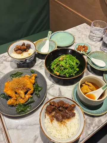 最近去左元朗 YOHO PLUS,逛完一轮商场,找到喜欢吃嘅台湾菜 - 玥,品尝下用心烹制嘅台湾料理~入到餐厅,以绿色为主调,色泽素雅,给人一种舒适自然感觉。地方都好阔落,有两边大玻璃窗,远望街景好开扬。晚餐时段来到,点选 "二人套餐" $398,包括汤、海鲜、主菜、蔬菜、主食及甜品,感受地道风味既台湾料理。黑蒜鸡汤 (2 盅)热腾腾嘅炖盅,汤入面有好多材料,包括黑蒜、鲜鸡、肉排、菇菌、鸡脚、杞子等,浓郁而不油腻嘅炖汤,淡淡黑蒜香气散发出来,十分足料。塔香鲜蚵煎蛋蚵仔选料新鲜,粒粒饱满,煎至外脆内软,加入独特调味,咸香鲜味真是令人回味~皮蛋三杯鸡一上枱热辣辣,用咗铁锅盛载,三杯鸡层次丰富,鸡肉嫩滑好入味,皮蛋口感软绵绵,每一口都充满正宗台湾味道。香菇树子炒水莲产自台湾嘅水莲菜,翠绿鲜爽,与香菇和蒜蓉炒香,调味啱啱好,食落咸香又滋味。手工安格斯卤牛肉饭 (2 碗)安格斯牛肉炆至软腍,卤汁好入味,入口即化,牛肉咸香惹味,与酱汁拌匀一齐食,啖啖都有浓郁台湾风味。芋泥芋圆鲜牛奶依碗望落好吸引,颜色丰富!材料多样化,有芋泥、三色芋圆、桃胶、黑糖珍珠、红豆,口感爽滑,加入牛奶香甜滋润。…查看更多