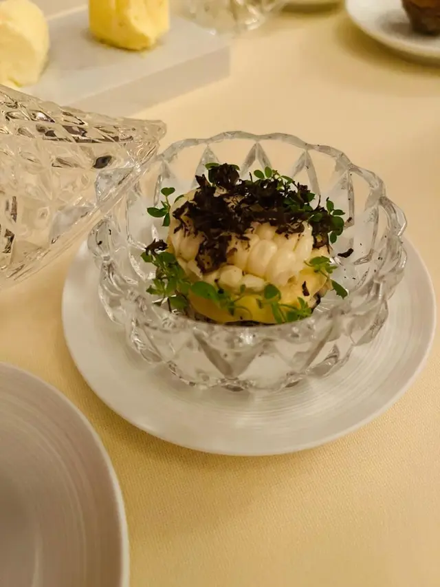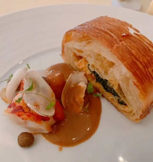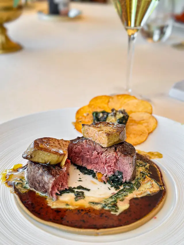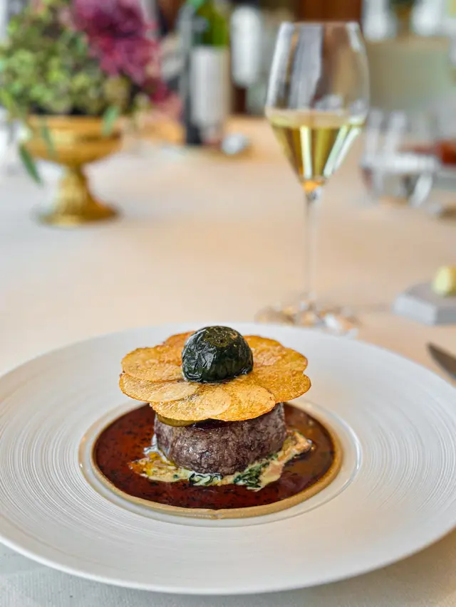 老公話今個月係我哋嘅拍拖週年月份,所以要每星期帶我去唔同餐廳慶祝(明明就係佢自己為食鬼👻!)今次佢一早book定米芝蓮一星法國菜Petrus🇫🇷,仲特登留咗窗邊位睇靚景!Petrus位於香格里拉56樓,飽覽維港全景,當日仲要藍天白雲⛅,望住成個維多利亞港食飯,真係賞心悅目~💙🍽️4 courses $788/位✨Amuse-bouche兩款精緻開胃小點,瞬間打開味蕾,準備迎接盛宴!✨Starters🍈Ham and MelonSucrine / Rocket / Bavarois火腿鹹香濃郁,帶熟成肉香,切成幼絲平衡咗鹹味~蜜瓜清甜多汁!Bavarois cream口感柔滑帶甜香,Sucrine清新爽脆,Rocket菜微微辛辣同胡椒味,成個配搭層次超豐富,完美打開味蕾!🐚Scallop北海道帶子 / Carpaccio / 柚子Ponzu賣相超級貴氣!用貝殼盛住切片帶子,優雅到不得了~帶子鮮甜無比,加上柚子醋提鮮,簡直係味覺衝擊👅💫餐廳好細心,安排先上兩款凍前菜,再上熱前菜,抵讚!🦪OysterOstra Regal / Velouté / Crouton熱湯以經典法式白醬為基底,飲到魚高湯嘅鮮味,口感細膩絲滑~法國蠔滑到難以形容,真係一試難忘!唯一美中不足係因為share關係,隻蠔一分為二,享受唔到原隻口感😢❤️Red Prawn (+$388)西班牙紅蝦 / 木炭烤 / Crumpet老公就係為咗呢隻紅蝦而來~絕對正確✅ 好味到癲!炭烤香超濃郁,蝦肉飽滿彈牙,點上醬汁鮮味爆燈!最後用Crumpet點蝦膏食,蝦膏澎湃濃郁,係一道幸福滿滿嘅美食😍✨Mains🦞Lobster (+$288)法國藍龍蝦 / Risotto / 巴馬臣芝士用上法國藍龍蝦,鮮甜爽口彈牙~不過如果叫咗Red Prawn,就未必需要再點呢個main,因為藍龍蝦相比之下稍為被比下去。Risotto口感極佳,吸收咗龍蝦精華同紅蝦油做底,香味突出,加上巴馬臣芝士增添鹹香,好出色!🥩A5 Wagyu (+$388)香川縣和牛 / 雞油菌 / 杏桃呢款和牛係用橄欖果實飼育,帶淡淡橄欖清香🌿,年產量稀少超珍貴!煎到medium rare,只加少許鹽同胡椒調味,入口慢慢融化~唔同一般和牛,呢款有軟腍肉質可以慢慢咬,滲出肉味同清香!另外有兩款醬:雞油菌帶杏仁香氣,杏桃醬我覺得太甜唔太夾。呢道和牛真係令人難忘~✨Desserts🌰Noisetier榛子 / 朱古力 / 煙熏雲呢拿雪糕榛子醬根本就係繽紛樂味道(一模一樣!),朱古力香滑,配煙熏雲呢拿雪糕超特別~估唔到雪糕都可以有煙熏味,好奇妙但好夾!🍫Soufflé (+$88)朱古力 / 車厘子 / 雪糕上枱前加入雪糕同車厘子醬,車厘子帶酒香,配清甜雪糕同輕盈Soufflé,作為今餐結尾真係太滿足~🍫Petit Four3款精緻朱古力為完美的一餐畫上句號~💖📍 珀翠餐廳 金鐘金鐘道88號太古廣場港島香格里拉56樓…查看更多