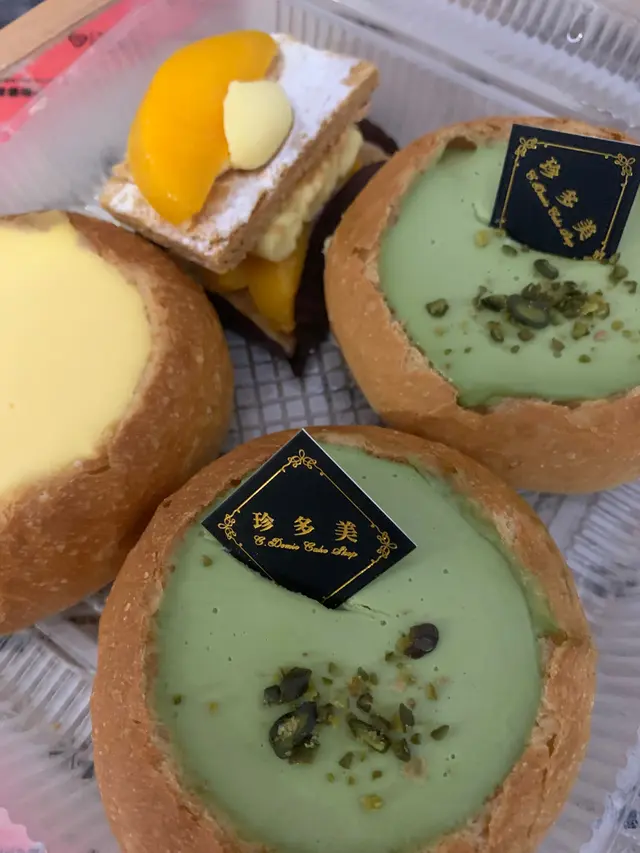 開心果控注意‼️|📍珍多美♡意大利開心果布甸♡|💰$26麵包皮偏韌但麵包肉食落仍舊軟熟,開心果布甸漿份量超多💚明明開心果成本高但布甸漿嘅份量居然仲俾其他麵包店多🤩真係超驚喜!第一啖食個布甸嘅時候會食到蛋同奶味比較重,不過食多幾啖個開心果味就變得越嚟越突出🥳而且口感偏向杰身滑口💓係我私心鐘意嘅口感💚仲要有開心果碎作為點綴,連打卡都特別靚❤️‍🔥而且值得讚嘅係布丁漿份量多、而且唔會過甜,成個食哂都唔會涸喉💚♡意大利開心果慕斯♡|💰$28🥹呢個開心果慕斯好重味,食得出係真材實料💚仲要cp值極高,絕對唔係好似東海堂咁三百幾蚊賣舊垃圾俾客😤除咗開心果味濃郁抵讚之外,蛋糕由原味cream、開心果慕斯、海綿蛋糕、朱古力味嘅脆脆(呢個唔太肯定,因為開心果味太濃😂)同埋底層嘅餅乾組成,層次超豐富🫶🏻估唔到$28仲可以買到呢啲心思之作💚不過亦因為開心果味比較濃郁,所以都會比較甜腬🥹如果可以沖杯熱茶邊飲邊食就完美了💚🧏🏻‍♀️總結一下:呢間麵包店嘅開心果產品真心值得一試,始終價錢平味道好🫶🏻真係好少見到開心果產品咁平🥹而且店員姐姐都好nice👍🏻同埋如果想即買即食嘅話同店員姐姐講聲就會提供埋餐具🫶🏻❤️‍🔥有興趣睇更多食評可以follow ig : fatting_eateateat❤️‍🔥查看更多