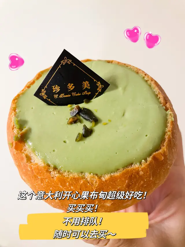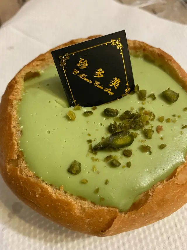 其实香港有很多好吃的布甸包,隐藏在居民区,不一定要挤网红店。这家布甸包随时都有,不用排队,不用等出炉时间,即来即买~~-🥤珍多美👣土瓜湾 土瓜湾道283号地铺(港铁土瓜湾站A出口,步行6分钟左右)-我最喜欢意大利开心果布甸包,26hkd一个,内料满满,超级好吃!不甜不腻,对我来说刚刚好~平时我还会给孩子买一些mini鲜果挞,7hkd一个,孩子很喜欢。-如果来香港旅行或者住土瓜湾附近的朋友可以试试这家布甸包~查看更多