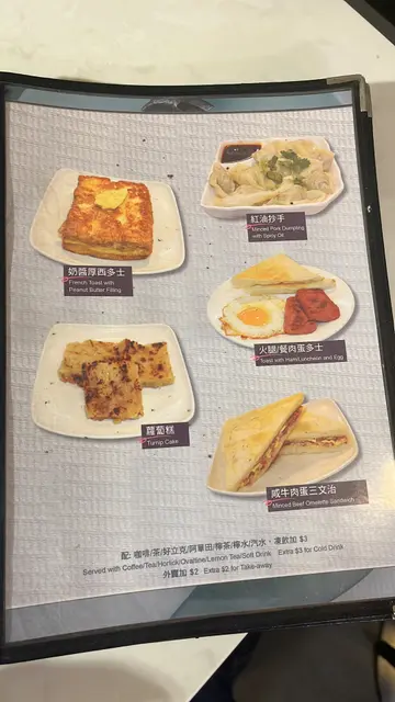 这个铺位比较不显眼, 好容易忽略. 高质素食品, 奶茶有茶味和幼滑口感. 两个人叫了牛腩饭, 饺子. 加多个猪扒多士. 这个一定要试. 丰富一餐: