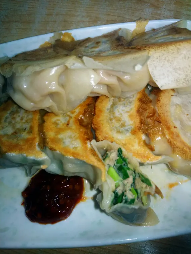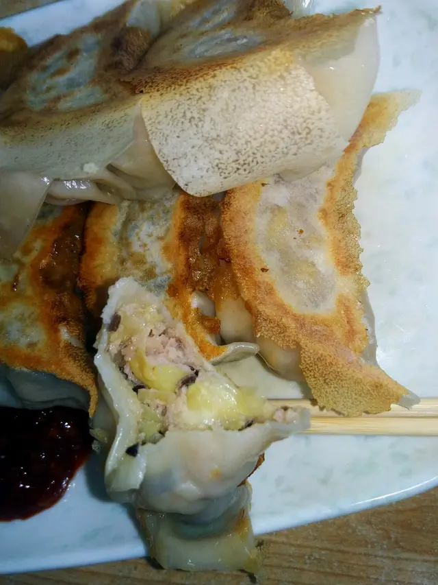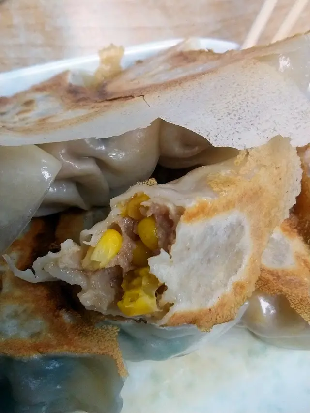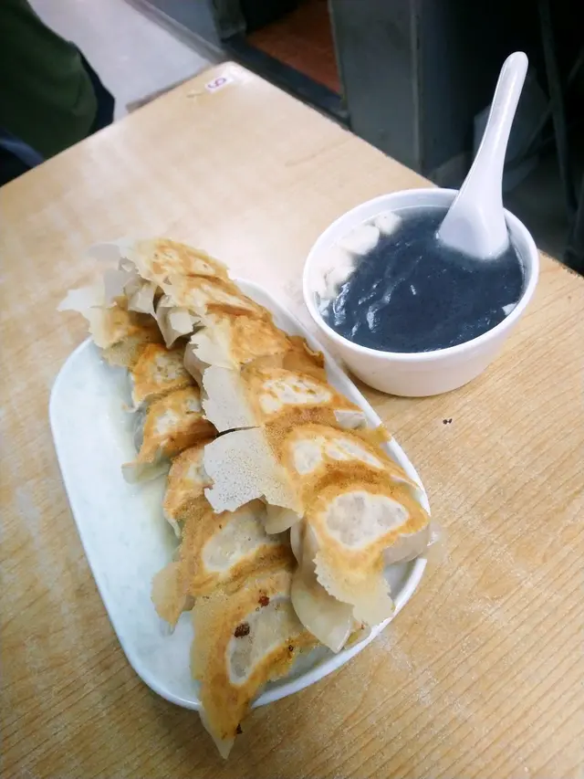 三拼(粟米豬肉、韭菜豬肉、椰菜雲耳豬肉)鍋貼 × 12隻($46) + 芝麻豆腐花($14)