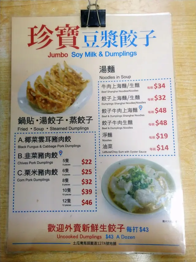 珍寶豆漿餃子 (土瓜湾) 网址: https://s.openrice.com/QrLS0rhS700 地址: 香港土瓜灣馬頭圍道127A號地舖 电话: +852 52819792