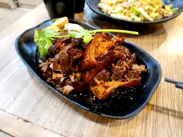 由细食到大, 有d不舍得,趁住佢结业前再食一次。泰式黄金炸蛋其实即系虾胶包皮蛋,皮蛋微微溶化带流心,加上外层香脆爽弹既虾滑, 好有口感,小朋友好钟意食。泰式卤水无骨猪手必食!猪手肉软嫩多汁,猪手完全吸收哂卤汁既香味,令人食指大动。 而且份量十足, 最后要打包拎走。泰式suki炒粉丝泰式经典菜之一,以粉丝配海鲜及菜炒埋一齐,味道酸辣微甜,食落惹味,令人回味无穷。最后叫左杯泰式奶茶,奶茶食落香浓顺滑,香味独特,有别港式奶茶。
