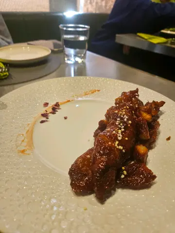 【【中环「珺」素食餐厅 - 创意斋菜新体验】隐藏在中环小巷的「珺」素食餐厅,装潢简约雅致,木系桌椅搭配柔和灯光,营造出舒适的用餐氛围。这里的创意素食令人惊喜,人均消费约180元,相当合理。招牌玫瑰叉烧以大豆蛋白制作,却能重现传统叉烧的蜜汁香气,口感细腻入味。桂花柚子猴头菇外酥内嫩,酸甜酱汁中透著淡淡桂花香,确实有咕噜肉的神韵。避风塘茶树菇香气扑鼻,炸蒜与辣椒的辛香让茶树菇吃来格外开胃。整体而言,这里的素食料理不仅创意十足,味道也在水准之上,份量适中。特别适合想尝试新派素食的朋友,或是寻找安静用餐环境的上班族。午市时段前来,更能享受超值套餐。中环「珺」素食餐厅 - 创意斋菜新体验】隐藏在中环小巷的「珺」素食餐厅,装潢简约雅致,木系桌椅搭配柔和灯光,营造出舒适的用餐氛围。这里的创意素食令人惊喜,人均消费约180元,相当合理。招牌玫瑰叉烧以大豆蛋白制作,却能重现传统叉烧的蜜汁香气,口感细腻入味。桂花柚子猴头菇外酥内嫩,酸甜酱汁中透著淡淡桂花香,确实有咕噜肉的神韵。避风塘茶树菇香气扑鼻,炸蒜与辣椒的辛香让茶树菇吃来格外开胃。整体而言,这里的素食料理不仅创意十足,味道也在水准之上,份量适中。特别适合想尝试新派素食的朋友,或是寻找安静用餐环境的上班族。午市时段前来,更能享受超值套餐。…查看更多