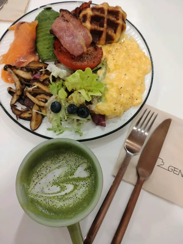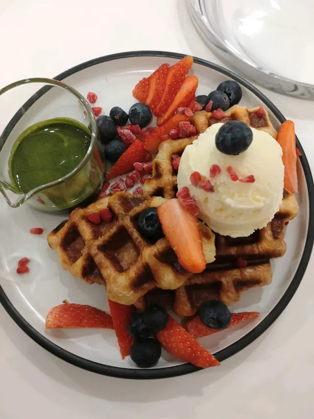 地址有少少難搵,依據Google行嘅方法,我足足兜咗兩個圈先至搵到,行到身水身汗又肚餓。見到周遭的客人,很多都叫牛角窩夫,呢個一定咪走雞,至於飲品,真係熱死人即刻要order個冰凍嘅tonic,消消暑。可能係小店關係,舖頭比較細,坐的枱比較擠迫,而且十分嘈,所以客人真係要細細聲哋講嘢啦。如果唔係天氣熱嘅關係,室外有兩張枱,都幾有氣氛。另外,可能當日生意真係比較好,自助餐具的位置,缺少了餐具,要我們向店員提出,他們才把餐具洗乾淨交給我們。Lemonade Espresso tonicElder flower Espresso tonic牛油果羽衣甘藍蕃茄意粉有驚喜