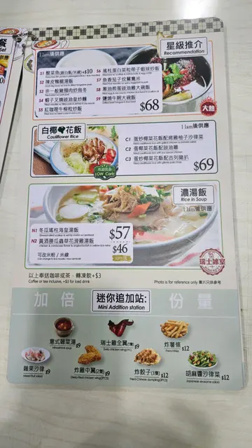 呢间位于葵兴贵盛工业大厦嘅瑞士咖啡室 已经喺葵兴好多年 入面写住只招待大厦员工 但其实佢都只系一间普通茶餐厅 任何人都可以入去 一推开门 就会发觉入面嘅地方非常之大 而且布置都几特别 几有怀旧嘅特色 座位就好似一般茶餐厅咁 系有少少迫但系还可以啦 我几喜欢佢嘅早餐 早餐嘅种类有好多 你想得出嘅都有 无论系正常嘅港式早餐 三文治 还有啲特色嘅多士 我最钟意食佢嘅 吞拿鱼撒蛋多士 再配杯 热奶茶 真系一绝 另外佢嘅午餐亦都有好多唔同嘅选择 例如会有粉面啦 会有一般嘅 炒粉面饭啦 又会有一啲特色嘅咖哩 其中有一个叫牛魔王咖哩饭 辣辣地 几特别几好味㗎 佢嘅价钱唔贵 我自己觉得佢畀茶餐厅略为平一啲添 但系食嘅种类就有好多 味道亦都唔错 喺葵兴返工 食呢一间 系一个唔错嘅选择 …查看更多