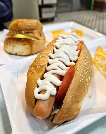 再加超多馅料!叫咗咸牛肉同蛋沙律两个唔同料强烈推介大家要+$2 烘底,完全系会食到外脆内软!(图中今次我系冇加烘底,但食唔晒攞咗返屋企焗返=烘底,系爆炸好食!下次一定+$2)另外想讲佢杯热杏霜少甜花奶,超 好 饮!!!必定encore!!!