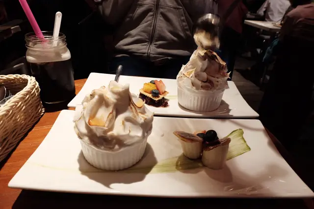 坐低之後, 侍應就遞左個用木板做封面既餐牌, 其實都係依家食甜品都會有既大路野: 梳乎里, 心太軟, 腸粉涼粉, 傳統既芝麻糊西米露都有。我同朋友都係朱古力控