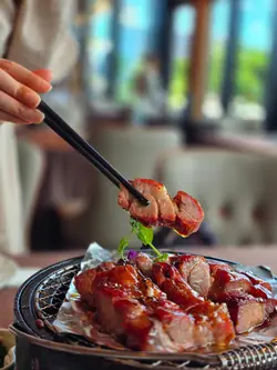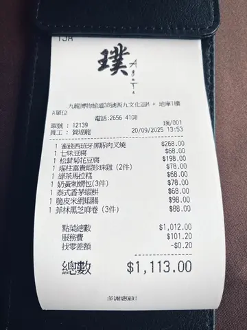 同男朋友喺西九文化区漫步后,嚟到呢间隐藏于文化园内嘅高级粤菜「璞」。全场楼底空间感足,仲有唔少人嚟包场办宴会,气氛优雅浪漫。今次试咗多款精致菜式,人均$879,每道都系视觉与味觉嘅双重享受!🌟 环境与服务· 宴会级场地配落地玻璃,望到西九夜景· 职员专业有礼,会详细介绍每道菜· 茶位用蜡烛保温,优雅得嚟保持茶温🍖 矿物质叉烧 ($268)|视觉系主打用西班牙黑豚肉制成,部位偏瘦但唔韧。上桌时用迷你炭炉保温,炭香随白烟飘散!最特别系配紫苏叶包住食,清新香气中和叉烧嘅蜜糖甜,创新得嚟又解腻~🍄 松茸菊花豆腐 ($198)|功夫之最将嫩豆腐切成盛放菊花形,每条幼度均匀!汤底清澈见底却暗藏玄机——松茸香气完全融入汤中,饮落鲜甜回甘,豆腐入口即化,简单中见功力!🥣 花胶酸辣汤 ($236)|温柔新演绎将传统酸辣汤改良,辣度与酸度减至三成,突出花胶丝、木耳丝同肉丝嘅鲜味。汤质浓稠滑溜,花胶份量足料,口感丰富又养生~🥗 柚子醋海蜇花 ($88)|开胃前菜选用海蜇最爽脆嘅「花」部位,配自家调制柚子醋。酸度明亮清新,唔似日式偏甜版本,更能带出海蜇嘅海洋鲜味!🍗 法葱油脆皮炸鸡 ($328)|惊喜之作去骨鸡件炸出玻璃脆皮,蘸上法葱与花椒调制嘅酱汁——葱香中带微微麻感,却唔会辣口!鸡肉保持嫩滑多汁,伴碟炸金蒜更添香口~🦞 龙眼肉泡胜瓜 ($228)|鲜甜极致用龙虾头熬制汤底,浓郁却唔厚重。胜瓜切成整齐小段,吸收汤汁后依然爽脆。龙虾肉弹牙鲜甜,汤汁可以直接当汤饮,鲜味萦绕不散!🍧 甜品双重奏· 陈皮红豆沙:绵滑起沙,陈皮香若隐若现,甜度恰到好处· 蔷薇燕窝奶冻:用上完整燕盏,丝丝分明。奶冻香滑颤动,奶香优雅不抢戏💎 整体评价▪️ 环境:宴会级装修,浪漫氛围满分▪️ 服务:细心专业,会因应用餐节奏上菜▪️ 食物:传统粤菜加入创新元素,每道都见心思▪️ 价钱:高级餐厅定位,质素对得起价格今餐体验绝对难忘,特别系菊花豆腐同法葱炸鸡展现嘅厨艺功力。推荐给想庆祝特别日子,追求精致粤菜嘅朋友!…查看更多