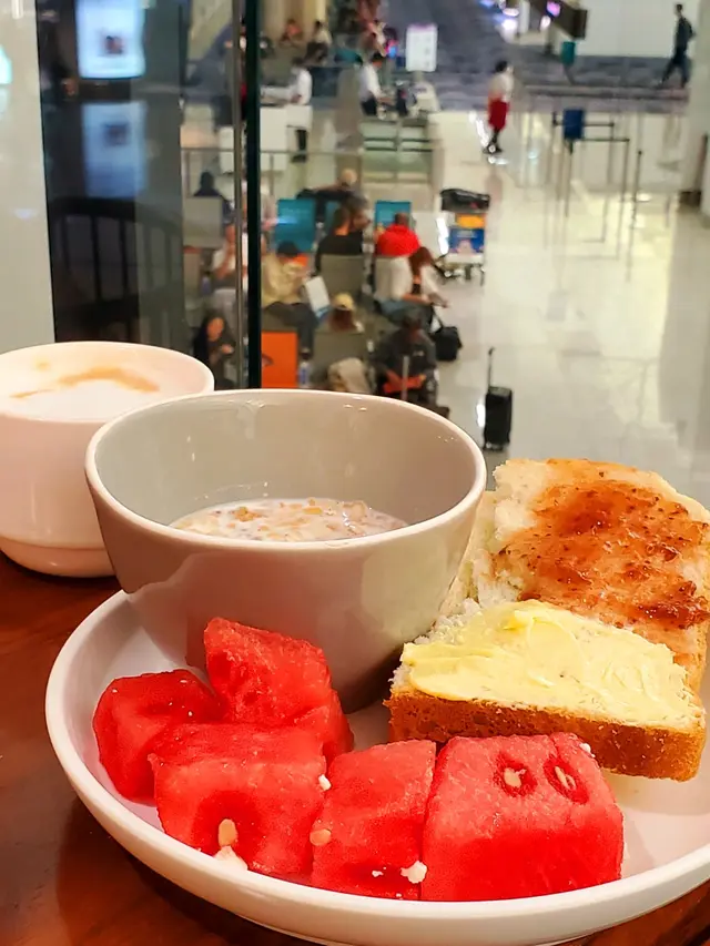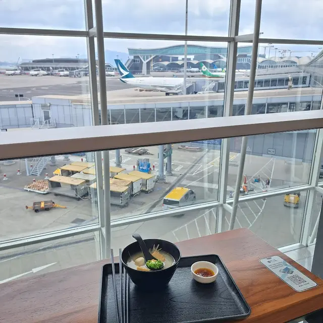 如果你經常出入香港國際機場,經過1號閘口附近的Plaza Premium Lounge一定不會太陌生。今次我特地約早上9點抵達,避開排隊的煩惱,想看看這間貴賓室究竟係點樣。進去的時候雖然無需輪候,但裡面人頭湧湧,想搵個舒適角落稍作休息都要先搵枱,座位感覺有點擠擁,私隱度有限,不太適合想靜靜放鬆的旅客。餐飲方面,提供了沙律、牛角包、熱粥、魚肉燒賣和炒銀針粉等普通港式早餐,還有魚蛋河粉,熱食選擇不多,卻兼顧了幾種常見口味。此外,還有方包和多士爐,方便客人DIY簡單多士。飲品方面,自助咖啡機和果汁機都齊備.整體來說,食物質素算不上驚艷,偏向實用路線。不過值得一提的是魚蛋河粉,湯底帶點鹹蛋的香氣,非常入味,魚蛋的口感Q彈滑順,頗有地道街頭小吃的靈魂,絕對是這裡的招牌推薦。如果趕時間或只想吃碗暖胃湯粉,這碗魚蛋河粉能帶來意外驚喜。總結來說,Plaza Premium Lounge雖不是豪華寬敞,但勝在便利快速。適合趕航班的旅客快速用餐和休息,感覺更像是一個機場補給站,而非長時間歇息的舒適天地。若果你心儀高品質及多選擇的貴賓室,這裡可能未必合你胃口,但要是想方便吃碗熱湯粉暖身,這裡的魚蛋河粉絕對值得一試。下一次到香港機場起飛,不妨花幾分鐘走入這間Lounge,試試這碗充滿港式風味的魚蛋河粉,相信會令你對機場的感覺多一份驚喜。…查看更多