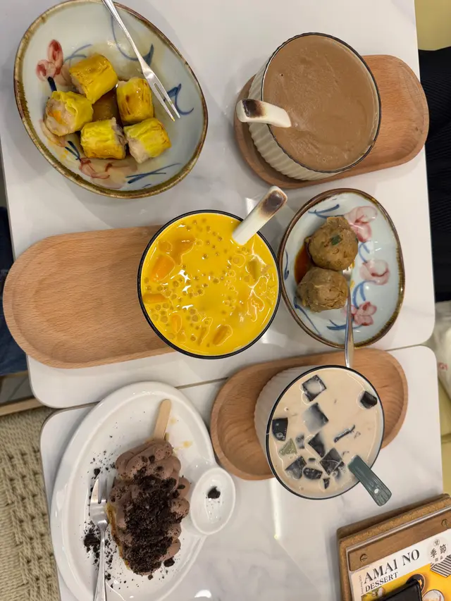 在這家甜品店的用餐體驗可謂是一次味蕾的盛宴。首先,我點了經典的楊枝甘露,這道甜品以其清新的口感和濃郁的芒果香氣而著稱。椰漿的香甜與西米的Q彈相得益彰,讓人一口接一口,欲罷不能。接下來是椰汁芋圓涼粉,這道甜品在炎熱的天氣中尤為消暑。涼粉滑嫩,搭配上香濃的椰汁和軟糯的芋圓,每一口都充滿了夏日的清新感覺。朱古力曲奇窩夫則是一個驚喜。外脆內軟的曲奇與香濃巧克力醬完美結合,讓人感受到巧克力帶來的幸福感。每一口都是對味蕾的一次奢華享受。花生合桃糊則是另一種風味,它濃稠而不膩,花生和合桃的香氣交織在一起,讓人回味無窮,是一道非常適合搭配茶飲的小吃。除了甜品,我還嘗試了牛肉球和燒賣。牛肉球外焦內嫩,肉質鮮美,而燒賣則是經典中的經典,每一口都能感受到豐富的餡料和鮮蝦的鮮味。總體而言,這家甜品店不僅提供了多樣化且美味可口的小吃,更讓我在每一道菜中都能感受到用心與創意,是值得再次光顧的一個地方!查看更多