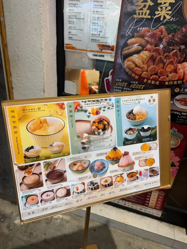 去尖沙咀睇恐龍🦕化石,搵食,一早bookmark咗甘の季節,帶埋屋企人去。自己叫咗桂花芋圓涼粉$45,桂花糕冇乜桂花味,芋圓彈牙,涼粉皓耐冇食,呢期食仙草多。屋企人叫涼粉楊枝甘露,芒果🥭甜,楊枝甘露西柚有口感。坐得都舒服😌,每人至少要叫一樣甜品。查看更多