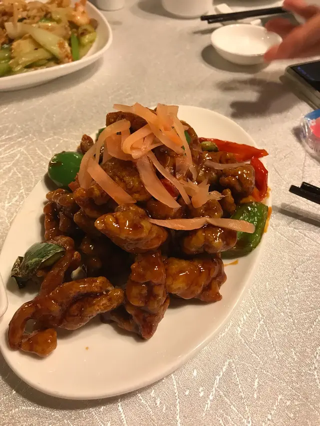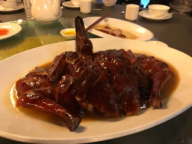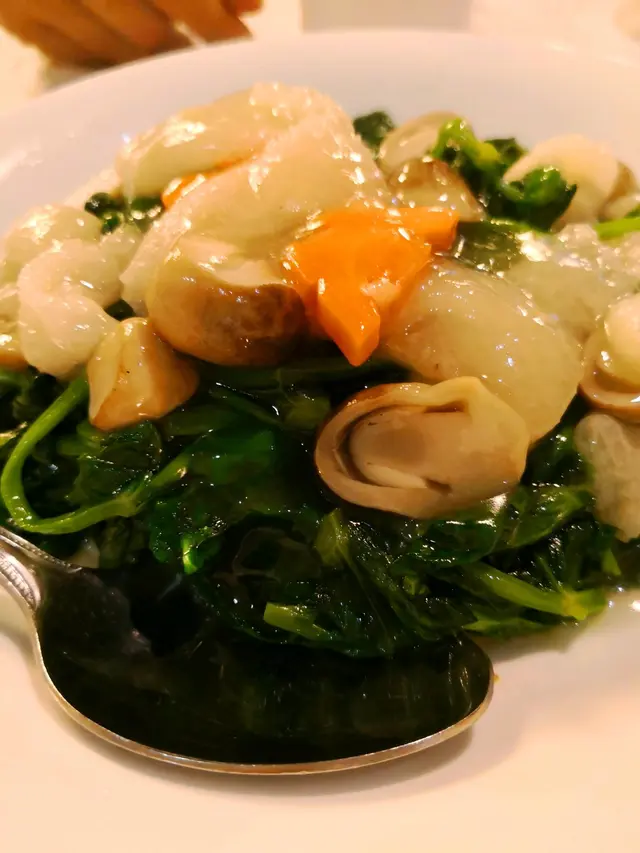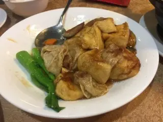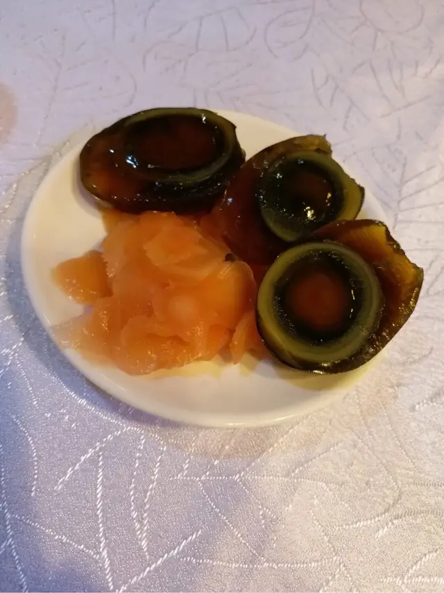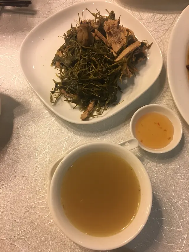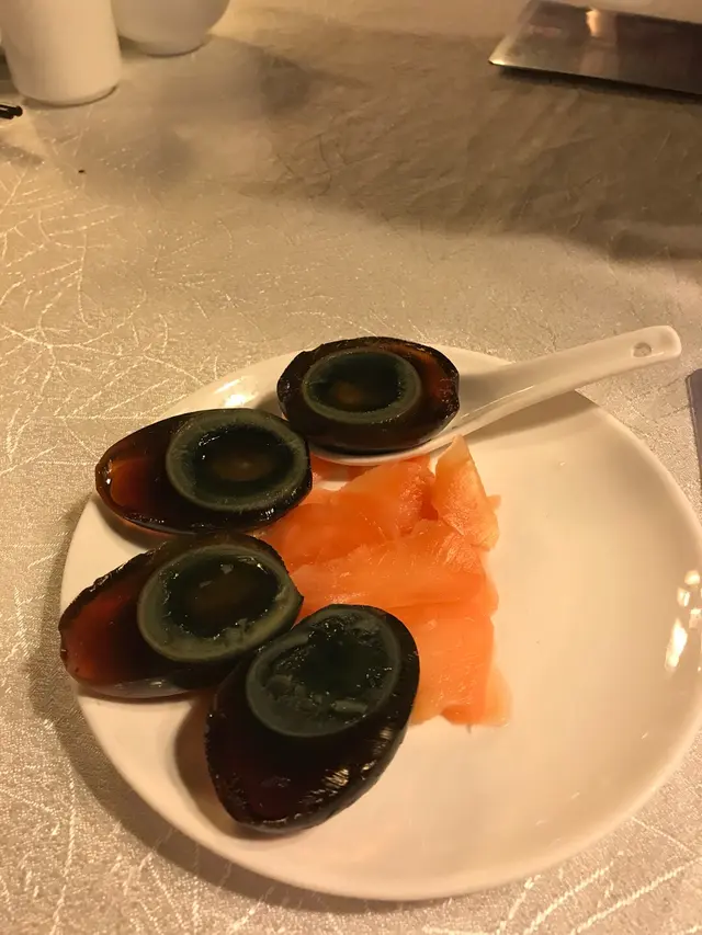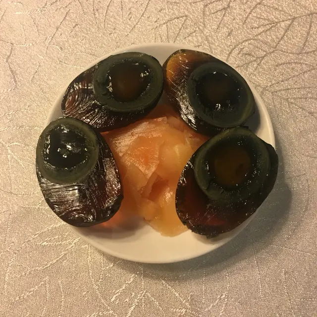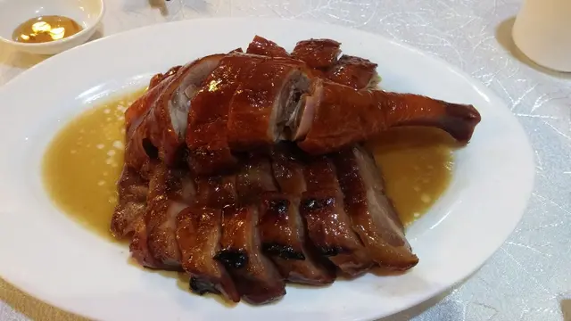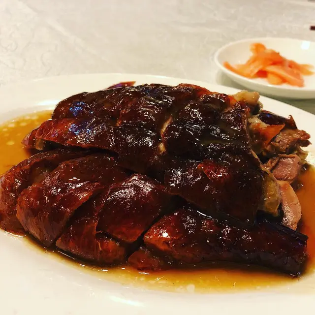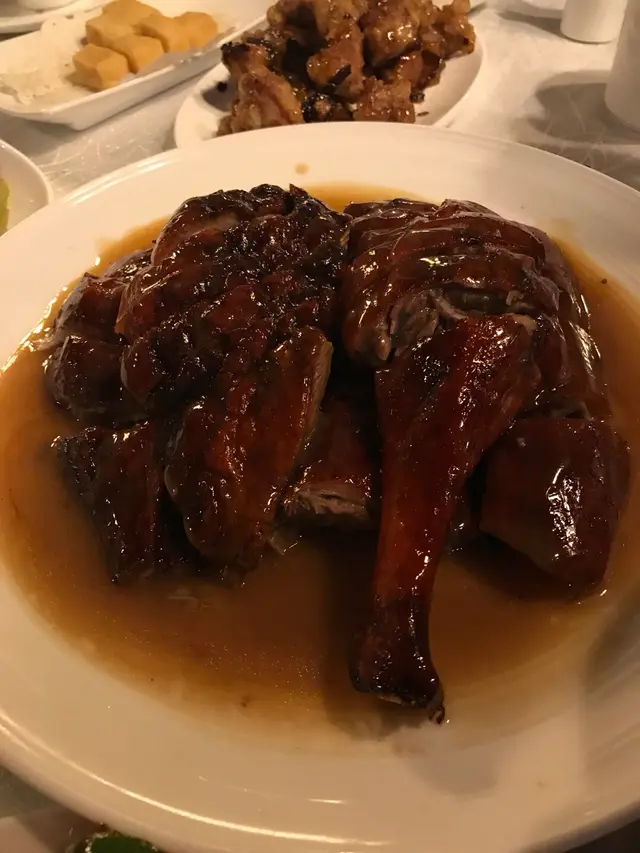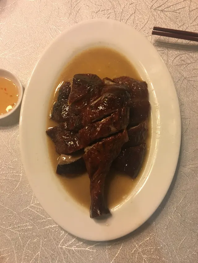 家住附近,幾年前吃過一頓,起初每晚也滿席,漸漸基於位置不便,人流少了,看到門外告示稱2月28日結業,將搬遷到銅鑼灣,特意來吃一頓車胎人晚餐。全場9張枱,只有5張入席。環境昏暗。菜式不多,點了金牌燒鵝、生煎鵝肝腸、秘製陳皮骨。先來的是前菜皮蛋酸薑。糖心皮蛋吃下流心而軟,不愧是招牌菜。金牌燒鵝用醬汁醃製,碟暖鵝暖,鵝的皮下脂肪均勻,肉味夠濃郁,配上梅子醬開胃絕美。陳皮骨吃下已嗅到濃濃的陳皮味,脆皮下的肉新鮮可口。鵝肝腸有趣但略油,但腸衣薄,濃郁甘香。…查看更多