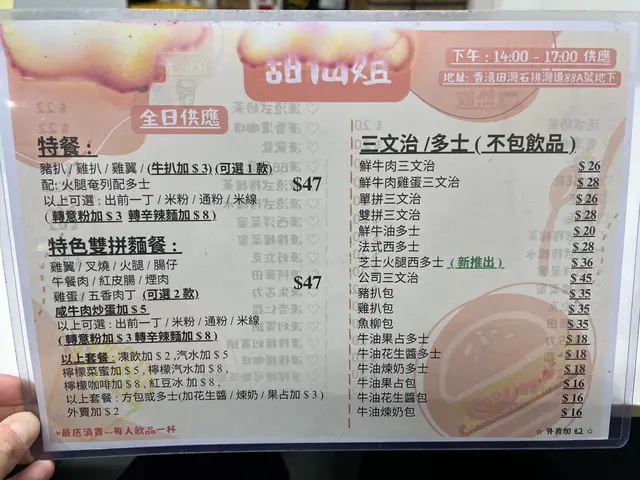 👉田灣小店《甜仙姐》,位處香港仔田灣街口。。。👆午餐每日均有多款選擇,$53(蒸魚$60)包例湯、熱飲☕️ (凍飲🥤+$2)👇午餐份量超級勁大份,白飯🍚用湯麵碗盛載,為普通飯碗2碗份量,成為附近一眾工友的飯堂。。。正常飯量的人記得叫少飯以免浪費‼️📌椒鹽豬扒飯 $53 ~ 豬扒切成條狀方便食用,肉質腍滑。最愛大量蒜蓉增香,咸香冶味,瞬間清盤‼️📌豆腐班腩飯 $53 ~ 班腩、豆腐均大大件,份量適中,汁醬下飯一流。。呢啲無骨餸,真係老少咸宜。☺️📌豉汁蒸黃花魚飯 $60 ~ 新鮮黃花魚,肉質嫩滑,簡單用豆豉蒸,健康又好味。。😋~~例湯好夠味,又足料,絕不是例水😆😍人情味小店,連杯茶都做得香濃細緻,好味又抵食,下次會再嚟🥳🏬 甜仙姐 (香港仔)🚦 香港仔田灣石排灣道88A號地舖…查看更多