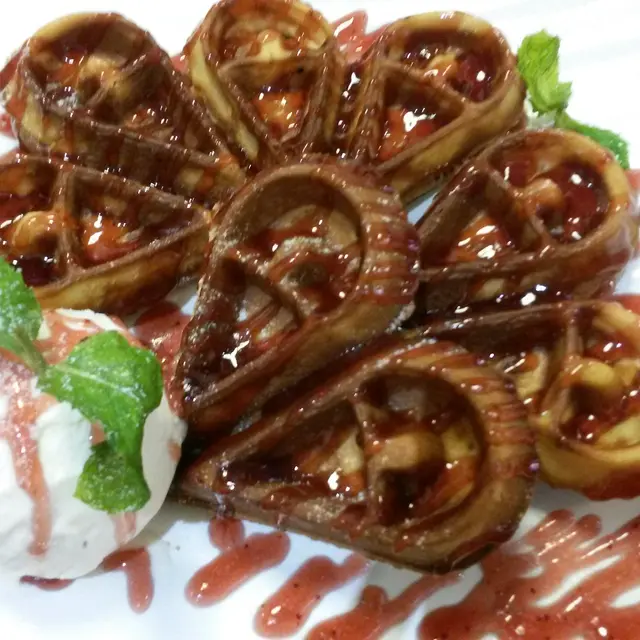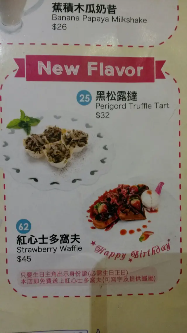 我地一行6人係沙田想食甜品,見到呢間都幾多人排隊,係門口攞咗個menu睇下有冇啱食,ok喎,就等下,無幾耐就有位,入面都幾細下,又逼又嘈!不過算啦,見啲甜品同其他甜品鋪ge有啲唔同就試下呢個唔好食!個甜品無味!呢個有雪米滋,不過未解凍,好硬=="同埋椰汁好香,好滑完整ge杯裝心太軟完第一次見用杯裝ge心太軟,個朱古力心都未溶哂,可以話有三種口感-脆脆地ge面,濃郁ge朱古漿同實的的ge朱古力波!呢張望落好吸引,仲切同砌到好似心型咁,好靚現實係咁樣ge,個窩夫皮好燶,入面係士多啤梨味,面頭仲有士多啤梨醬,如果唔係咁燶會好食好多查看更多