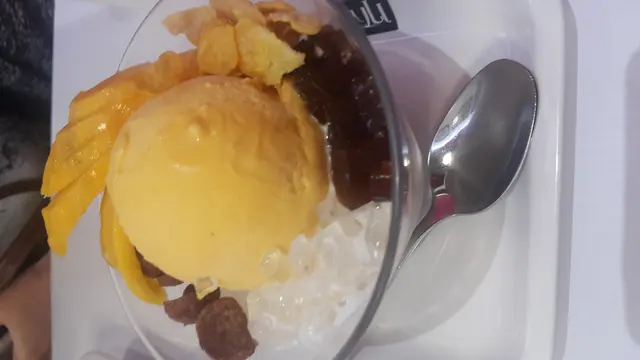 賣相同我menu 一样,窩夫外脆内熱,一口咬落去感覺好满足。不過食落有些小dry , 我都只係食左一兩件就已經飽。足夠兩人份量。依個口感好豐富,一啖已經有齊西米露、咖啡味暏喱粒、圓錐形透明帯小甜嘅啫喱。食落芒果剛剛好唔太甜,味道幾清新。查看更多