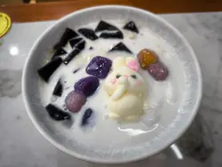 今晚试咗呢一间大埔广场新开的甜品店,一心谂住黎食佢嘅皇牌雪燕炖椰皇,点知卖晒,所以就叫咗芋圆,一碗系芋圆凉粉,另一碗系芋圆河粉,味道都唔错。芋圆河粉嘅河粉唔系平时粉面舖𠮶D,只不过真系好似样,但系食菬就完全两回事,呢款甜品河粉几好食,个质感好滑,口感唔错。