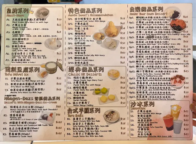芒果大合奏 / 芝麻豆腐西米露 / 榴梿豆腐花 / 即撞木桶豆腐花 / 榴梿雪沙