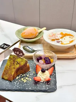 今次同朋友去试下呢间人气甜品店,无论系颜值定味道都几高质。🌖可爱QQ雪见·士多啤梨 $45呢个造型真系超治愈,表情可爱,上面粒鲜红欲滴、晶莹饱满嘅大草莓好抢眼。外层麻糬薄薄一层,质感软糯烟韧,好似雪糕糯米糍嘅轻盈外皮。咬开仲有软滑香甜嘅爆浆内馅,甜度恰到好处,唔会腻。最重要系颜值满分,打卡必点!🌖焦糖巴斯克开心果芝士蛋糕配鲜果 $68面层焦糖厚厚一层,带微微焦香,如果再薄脆少少会更完美。芝士蛋糕入口绵密幼滑,口感轻盈唔会太heavy,仲渗出淡淡嘅开心果坚果香,味道清新不腻,伴随新鲜水果一齐食更加平衡。🌖榴梿雪糕窝夫 (升级榴梿雪糕) $66雪糕入口有浓郁榴梿味,唔会假假地;雪糕以外仲有香浓嘅榴梿蓉,满足晒榴梿控。窝夫即烤即上,热辣辣外脆内软,配埋冰凉雪糕同香脆粟米片一齐食,口感层次丰富又对比强烈,超级过瘾。🌖鲜奶桃胶椰皇炖蛋白配莲子 $69椰皇炖蛋白一定要趁热食!满满嘅椰子香同滑捋捋嘅蛋白,入口细腻柔顺,再加上养生爽滑嘅桃胶同清甜绵密嘅莲子,最后淋上香浓鲜奶,口感更圆润。整体味道清香滋润,真系美味与健康并重。-…查看更多