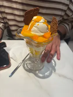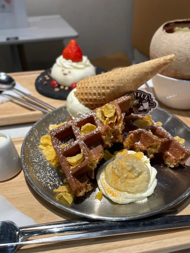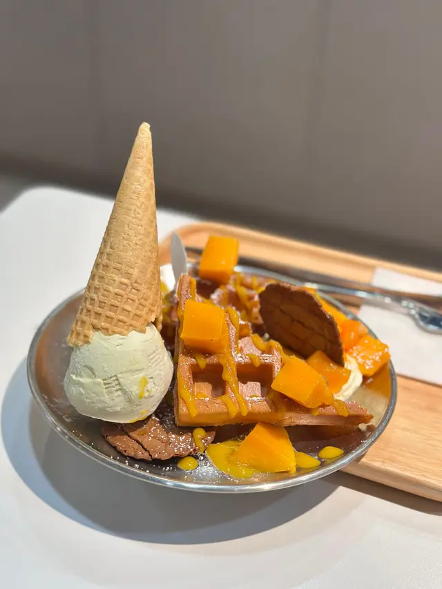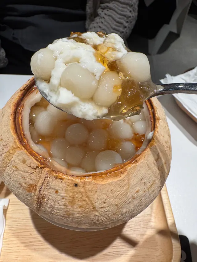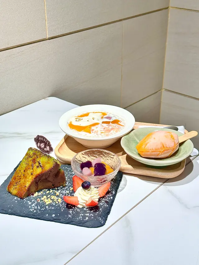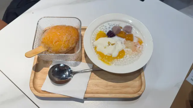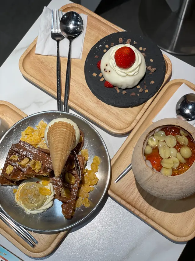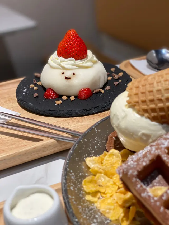 今次同朋友去試下呢間人氣甜品店,無論係顏值定味道都幾高質。🌖可愛QQ雪見·士多啤梨 $45呢個造型真係超治癒,表情可愛,上面粒鮮紅欲滴、晶瑩飽滿嘅大草莓好搶眼。外層麻糬薄薄一層,質感軟糯煙韌,好似雪糕糯米糍嘅輕盈外皮。咬開仲有軟滑香甜嘅爆漿內餡,甜度恰到好處,唔會膩。最重要係顏值滿分,打卡必點!🌖焦糖巴斯克開心果芝士蛋糕配鮮果 $68面層焦糖厚厚一層,帶微微焦香,如果再薄脆少少會更完美。芝士蛋糕入口綿密幼滑,口感輕盈唔會太heavy,仲滲出淡淡嘅開心果堅果香,味道清新不膩,伴隨新鮮水果一齊食更加平衡。🌖榴槤雪糕窩夫 (升級榴槤雪糕) $66雪糕入口有濃郁榴槤味,唔會假假地;雪糕以外仲有香濃嘅榴槤蓉,滿足曬榴槤控。窩夫即烤即上,熱辣辣外脆內軟,配埋冰涼雪糕同香脆粟米片一齊食,口感層次豐富又對比強烈,超級過癮。🌖鮮奶桃膠椰皇燉蛋白配蓮子 $69椰皇燉蛋白一定要趁熱食!滿滿嘅椰子香同滑捋捋嘅蛋白,入口細膩柔順,再加上養生爽滑嘅桃膠同清甜綿密嘅蓮子,最後淋上香濃鮮奶,口感更圓潤。整體味道清香滋潤,真係美味與健康並重。-…查看更多