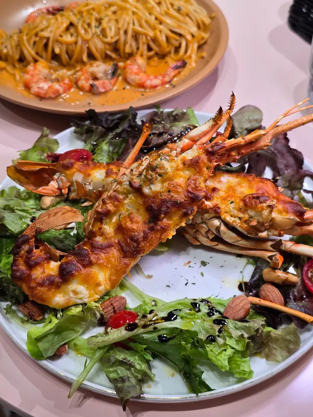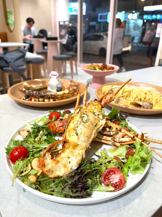 今晚同朋友慶祝生日,佢最鍾意食甜品,專登帶佢去旺角呢間甜品店食晚飯,又可以食精緻嘅甜品,又可以食埋晚飯唔使周圍走,一舉兩得。旺角甜牙牙除咗有甜品食之外,最近仲有二人龍蝦套餐,前菜先嚟一人一隻汁煮鮑魚,非常入味,仲切開一片片超級細心。呢個小食除咗鮑魚之外,其實仲可以揀其他小食例如牛仔粒沙律菜等等,選擇都幾多。主菜揀咗芝士烤龍蝦,面層舖上香濃的芝士夠晒香,芝士配龍蝦永遠都覺得係絕配。番茄大蝦面,雖然配料好似好普通咁,但係個意粉好好食,啲汁煮到剛剛好,一啲都唔普通。之後就係甜品,揀咗個拿破侖配Tiramisu加埋個抹茶雪糕🍦呢一餐真係大滿足😋…查看更多