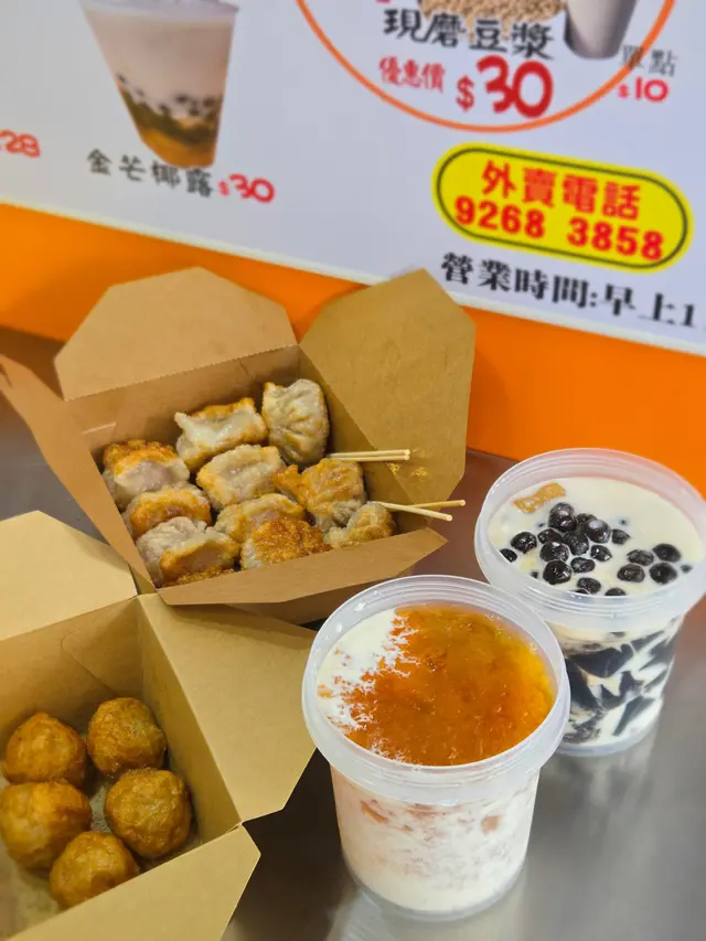 久不久經過大埔昌運,就會去呢間買糖水返屋企慢慢嘆。前幾日帶埋囡囡去,就試埋炸餃子🥟同炸燒賣。餃子有2款,分別係韮菜豬肉同粟米豬肉餡,小朋友鍾意食粟米,所以試咗「粟米豬肉」。賣相煎到金黃色,又脹卜卜都幾吸引,外皮香脆,咬落去似窩貼,老闆話佢係自家制。餡料都幾多粟米,豬肉無豬羶味,幾好味!一盒10隻份量都多,食完飽咗!炸燒賣係必點食物,炸到外脆內軟,外皮灑咗少少准鹽,幾惹味,真係好好味!今次甜品揀咗「多芒仙草小丸子」 和「綜合芋圓燒仙草」。呢度嘅甜品好足料,一樽真係滿滿材料!「多芒仙草小丸子」 唔止用椰奶,仲加咗芒果蓉,口感更濃厚一啲,芒果好甜無渣,加埋滑溜嘅仙草,幾好味!「綜合芋圓燒仙草」 嘅材料好多,除咗芋圓、仙草,仲有紅豆、珍珠同西米。呢個甜品主打係食Q彈嘅芋圓,有不同口味,軟硬度對我嚟講剛剛好。食材迫滿一樽,一個人食真係好飽,可以2人開心share。…查看更多