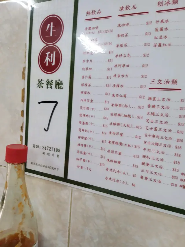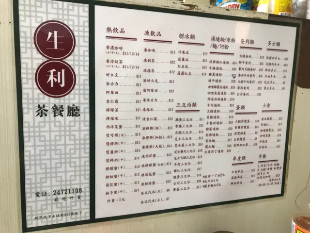 鄉愁夢思親土生故里情氣節不可止息爭萬世興時代是前進的,但富足生活就產生懷念舊物的情懷。流浮山著名的海鲜街內一道橫巷,一家保持著舊裝修、舊卡位的街坊小店《 生利茶餐廳 》。青少年人(零零後)應該到訪吓。( 奶茶和鴛鴦 ) 是考驗港式茶餐廳的不二之選。奶茶 : 茶香氣不重,無奪走奶香和奶的柔滑,表現了勞動街坊們,對補充營養和體力的要求,踏踏實實的一杯古早味道。鴛鴦 : 奶茶混合咖啡造成。要有奶茶的元素,也要突出咖啡的濃香,在理論上有一定的比例,但師傅的手藝才是重點。因為原材料總有差異,不會長年累月都是同一品質的。今次品嚐到一杯帶點濃香咖啡味的正品貨。溫馨提示 : 有多樣街坊小吃,留待日後再試,例如鳳爪麵等。…查看更多