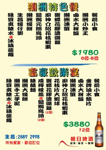 随著天气逐渐凉爽,正好是坐外面享受打冷潮州美食的好时机!**花胶鸡汤** 这碗鸡汤底非常浓厚,香气四溢。花胶筒似乎是最后放上去的,因为整碗汤并没有明显的花胶味,可能怕会溶入汤里。汤底的香浓感来自于鸡汤和金华火腿,味道十分美味。**韭菜猪红** 这道菜的猪红量绝对多过韭菜,让我忍不住笑出声。味道相当不错,猪红的口感滑嫩,搭配韭菜的香气,整体效果很好。**咸肉春菜** 这道菜炆得非常香浓,味道入味,口感也相当好,值得一试。**卤水鹅肉** 不过,卤水汁略显咸,鹅肉的表现则普通,并不特别突出。豆腐底用豆干,这部分我就觉得一般,没有特别的惊喜。**前菜花生** 亮点是前菜的花生,十分新鲜且香脆,为整餐增添了不少口感。原本还想试试潮州炒面线,但因为三个人食量有限,实在太饱了,所以下次再来试吧!环境及服务坐在室外的感觉非常舒服,尤其是在凉爽的天气中。不过,唯一的缺点是会有食烟的情况,这一点希望能改善。总结来说,这次的打冷餐厅经验还算不错,食物的味道和环境都令人满意,下次一定会再来尝试其他菜式!…查看更多