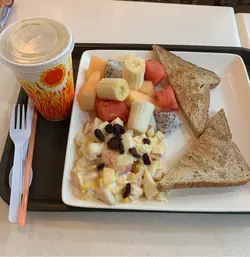 12.11.2020堂食生果沙律、麦包两片、吞拿鱼碎蛋焗薯、香蕉奶昔、粟米汤呢个组合样样都好食,食过番寻味05.02.2021外卖今次同其他同事一齐叫了很多外卖,前一天预订餐单,然后fax餐单到舖头,非常方便,而且之前可以用支付宝付帐。我自己叫了烟三文鱼杂菜沙律、吞拿鱼忌廉蘑菇焗薯、红菜头甘笋汁。烟三文鱼好味,生菜好新鲜,点少少千岛酱已经超级好食。呢间嘅焗薯不嬲都好食,平时食开吞拿鱼粟米焗薯,今次转吞拿鱼忌廉蘑菇,原来忌廉蘑菇系罐头汤cream,麻麻地,下次试第二样。杯果汁红卜卜,甘笋味好重,无乜红菜头味😂但系要称赞佢嘅外卖,非常整齐准时,细心服务,每份食物都会帮你标记人名。
