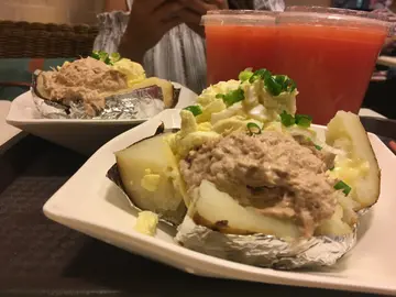 平时喺连锁嘅快餐店,要食一份焗薯,连埋嘢饮,分分钟要$70至$80。呢一间喺屯门柏丽嘅小店,真材实料,一份焗薯配两款食材,例如有茄汁豆、吞拿鱼、碎蛋沙律、芝士、忌廉芝士等等,都系$28咋