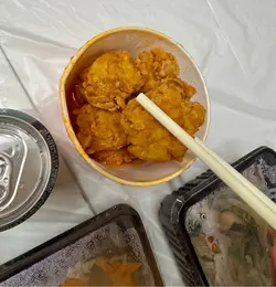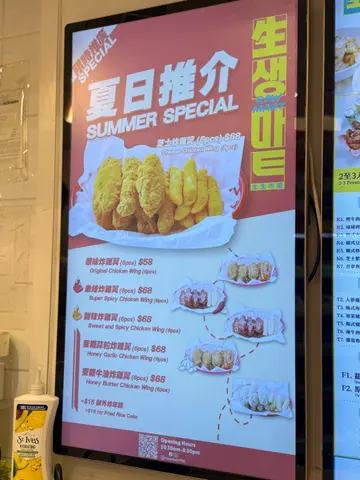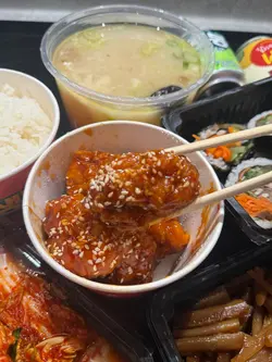 呢日去开元朗,在市中心路过依间专卖韩国食品店嘅生生市场,款式种类好多,有熟食亦有生酱油蟹,天气咁热想食啲开胃野嘅饭卷、炸鸡、韩式炒粉丝等,即刻入店内拣番啲韩式食品返屋企先 ~韩式杂菜粉丝午餐盒 $80午餐盒里面有多款食材,韩式炒粉丝,粉丝弹牙爽口,配料丰富,带香甜好美味,微辣爽口嘅泡菜,莲藕酱汁入味,豆芽及菠菜带清新麻油香,适合拌饭。配合蔬菜味噌汤,汤味清甜,洋葱鲜菇爽口,不错嘅午餐盒。 蜜糖牛油无骨炸鸡 $58去咗骨嘅炸鸡,方便易食,韩国鸡肉味香,质地嫩滑唔干身,而且有肉汁,炸到外脆内软,而依度嘅炸鸡有独门技巧制法,炸出嚟唔油腻又鲜嫩酥脆嘅鸡件,沾满香甜嘅蜜糖牛油,口感层次更丰富更惹味。甜辣无骨炸鸡 $58炸至金黄嘅无骨鸡块,外脆内软,好香口,鸡肉鲜嫩,入面有肉汁,食落唔油腻,外层沾满甜辣酱汁,微辣香甜,越食越滋味。烤牛肉紫菜饭卷 $53馅料丰富嘅牛肉紫菜饭卷,牛肉香浓,肉质鲜嫩,配搭埋其他食材有紫菜、青瓜、蛋、红萝卜、脆瓜、生菜等,喜欢好多材料,清爽鲜甜,食出唔同味道,多种层次,好美味。…查看更多