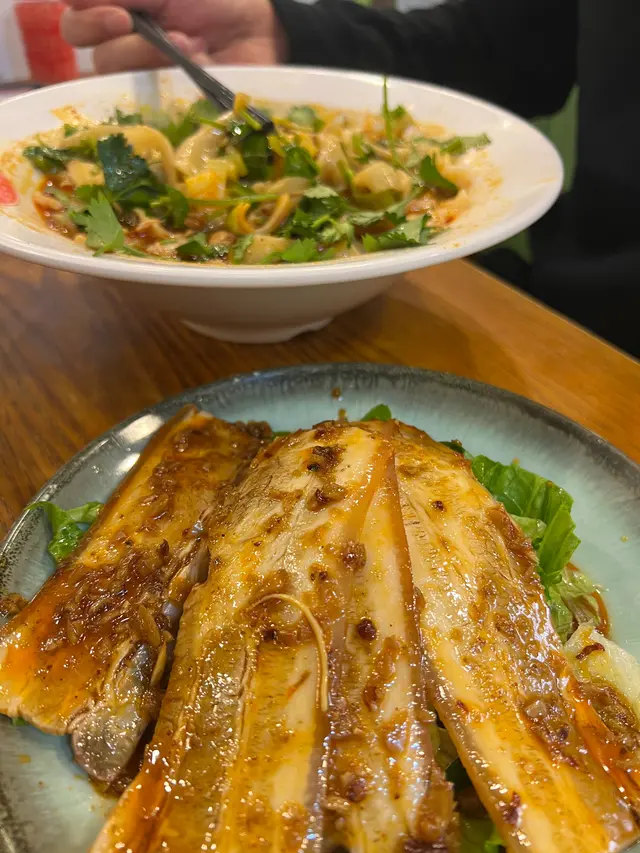 星期六熱辣辣☀️☀️☀️下午2點幾行到呢間餐廳嘅門口俾佢嘅冷氣吸引咗,冷氣夠晒凍好舒服😄😄咁就入去坐低試吓啦麻辣魚片拉麵BB辣$54,唔辣,啲魚片就麻麻哋,雖然夠多,但係太多骨,如果係鱸魚片會開心好多,個拉麵有幾好味,粗粗地硬硬地,手打係唔同啲,咬口唔錯👍🏻不過個湯真係越食越鹹🙇🏼‍♂️🙇🏼‍♂️蘭州牛肉米線$52,牛肉正常份量,平均每舊都切得細舊,牛肉會連少少筋,都算好味,米線淥得太淋麻麻地🙇🏼‍♂️🙇🏼‍♂️唔算太大碗總結:嘢食一般,手打刀削麵或者拉麵應該唔太差,冷氣夠凍好舒服查看更多