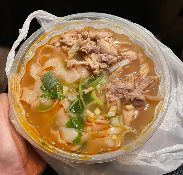 喺六點後禁堂食既時期無辦法之下唯有叫下外賣返屋企食本身想叫撈麵,不過話無做,唯有叫返湯麵小辣我覺得完全唔辣可能無分湯既原因,麵比較軟,麻麻地不過都對得住依個價錢既手撕雞不過不失查看更多