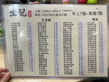 一连几日大鱼大肉,食粥清淡一下,揾咗几间油尖旺一带的粥店,都系9点前关门!同时唔知系咪依家物价太贵,食碗粥都几十蚊,真系肉赤。最后揾到黎生记!新地都算系旺角老字号粥店,以前个位比较开扬,但搬咗舖之后,喺上海街,夜晚生意就比较淡静。不过佢一至日都开,而且营业到23:30,今时今日喺唔忧做嘅香港,呢点真系好难得。夜晚嚟到得三两台人,我觉得自己黎得合适!因为呢啲良心小店,真系需要帮衬!餐牌上大部份的粥品都不超过$25蚊,真系良心价。当然生滚粥就贵少少!点了鱼片艇仔粥、皮蛋碎牛粥、虾米肠和一个炒面。粥底好绵密,唔会好稀,料都好足,食完唔会觉得只系饮水咁,真系几好食!肠粉和炒面都正常发挥,送粥系最佳配搭!食食吓粥,仲有可爱的小猫店长过嚟陪食,好温驯好可爱,好想同人玩!埋单86蚊,食到饱饱!呢间小店值得帮衬!…查看更多