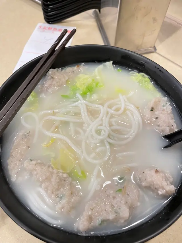 晏晝一點半嚟到生記魚湯米線,門口依然人頭湧湧,好多人等外賣,好在堂食唔使等位。叫左個魚滑魚湯米線,先嚟飲一啖鮮味嘅奶白色魚湯,完全唔覺得有腥味,但胡椒粉味都幾重。魚滑好新鮮,入面仲有少量蔥同陳皮調味,總共有成八舊咁多🤤,食晒成碗都真係幾飽。米線入面亦有少量椰菜同埋芽菜做配料,感覺好健康。米線略嫌碎咗少少,亦有少部份米線未煮透。小插曲:喺食米線期間,聽到有個客投訴個店員抹枱抹得好求其,店員態度都幾差,唔想幫佢再抹,仲同個客嘈左幾句🤦🏻♀️…查看更多
