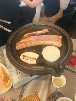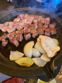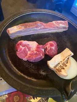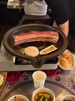 今日去完大館參觀之後落咗嚟田浦呢度食燒肉 我哋兩個人叫咗佢800蚊嘅豬肉餐同埋一個蒸蛋依家有活動留評語就送水冷麵 烤肉餐有五花肉 豬扒 豬頸肉同 豬皮 全程唔洗自己落手會有職員幫你燒 五花肉肉味幾香 但今日呢次略嫌燒得有啲過龍豬扒唔乾 夠厚身有豬肉嘅香味而無五花肉咁肥 豬頸肉係已經事先醃製過 偏甜口 解膩唔錯豬皮意外偏軟身 無想像中咁有膠質 但都唔錯 蒸蛋面有芝士同粟米 比其他菜式味道偏淡 可以當係一個中和口味嘅配菜水冷麵作結超完美 水冷麵清涼酸甜爽嘅口味中和番先前烤肉嘅熱氣 如果之後有機會會想再幫襯 但係可能會等約多啲人先再嚟 因為呢度嘅份量都幾大碟 而且有好多小菜 我哋最後都要打包走 2個人嚟食下次可以揀無豬皮嗰個餐會好啲🤣 唔係食唔曬查看更多