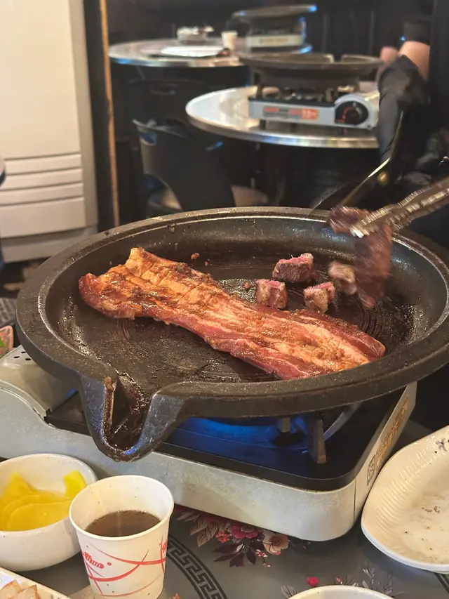 田蒲食肉是一間主打韓式燒肉的餐廳,近年在香港人氣急升。店內裝潢走工業風格,氣氛熱鬧,適合朋友聚餐或情侶約會。餐廳提供多款肉類選擇,包括牛五花、豬腩肉、牛舌等,肉質鮮嫩,油花分佈均勻,烤後香氣四溢。特別推薦他們的招牌厚切牛舌,口感彈牙,配上特製醬料更添風味。除了燒肉,田蒲食肉亦供應韓式小菜如泡菜、醃蘿蔔、水冷麵等,味道地道,解膩之餘也增添層次。服務方面,店員親切有禮,部分分店更有「韓國oppa代烤」服務,讓客人專心享受美食。價錢方面屬中高,但以食物質素及整體體驗而言,性價比不俗。整體而言,田蒲食肉是一間值得一試的燒肉店,無論是味道、環境或服務都令人滿意。…查看更多