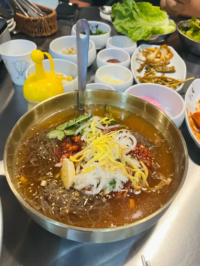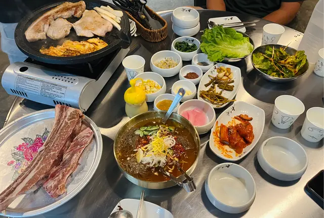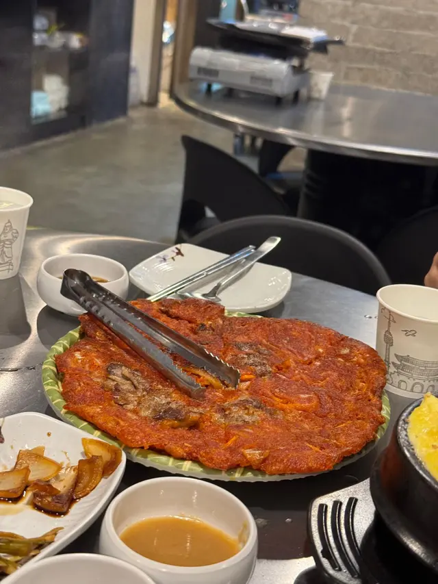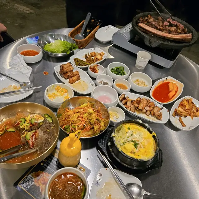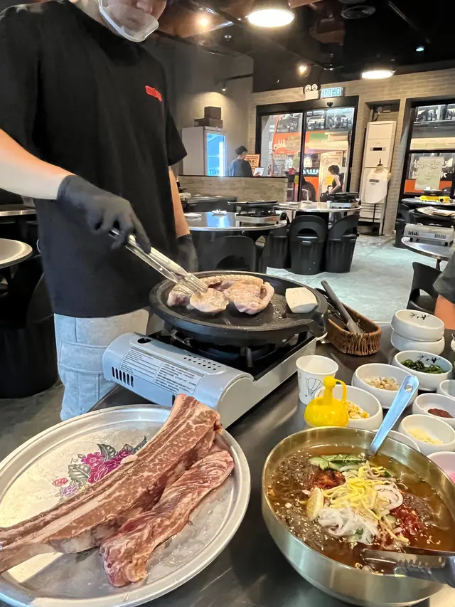 最近同朋友去咗荃灣食韓式燒肉,成間餐廳裝修走韓式工業風,環境舒服,座位夠闊,最正係有專人幫手燒肉,唔使自己手忙腳亂,可以專心傾偈同食野,氣氛真係一流。😋 烤牛排骨 + 牛五花肉套餐 ~ 呢個套餐係主角,牛排骨切得厚薄適中,燒完之後外層微焦,入面仲保持嫩滑,啖啖肉汁,牛味濃郁。牛五花就係肥瘦相間,燒到微微焦邊,油脂滲出嚟,入口即溶,真係食唔停口。加上有專人燒得好好,唔會燶唔會生,食得好放心。😋 海鮮大醬湯 ~ 呢碗湯一上枱就聞到濃濃嘅大醬香味,湯底濃郁但唔會太鹹,入面有多款海鮮,啖啖都好足料。😋 泡菜煎餅 ~ 煎餅係薄身款,外皮煎到脆卜卜,口感偏乾,入面就有泡菜絲、蔥花、少少辣椒粒,食落去酸酸辣辣,幾開胃。😋 水冷麵 ~ 食完燒肉之後食返碗水冷麵就啱晒!麵條煙韌又冰凍,湯底係酸酸地嘅醋味,清新得嚟又解膩,係燒肉之後嘅完美收尾。查看更多