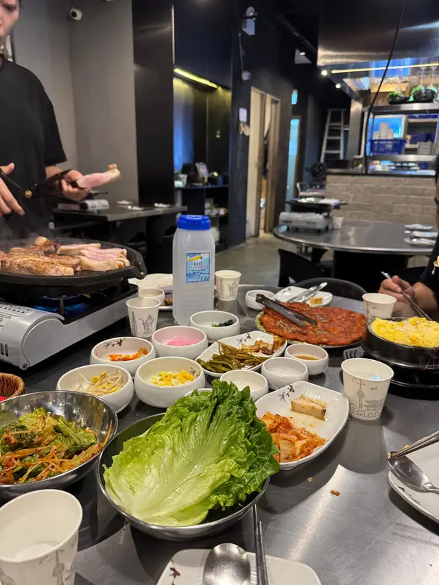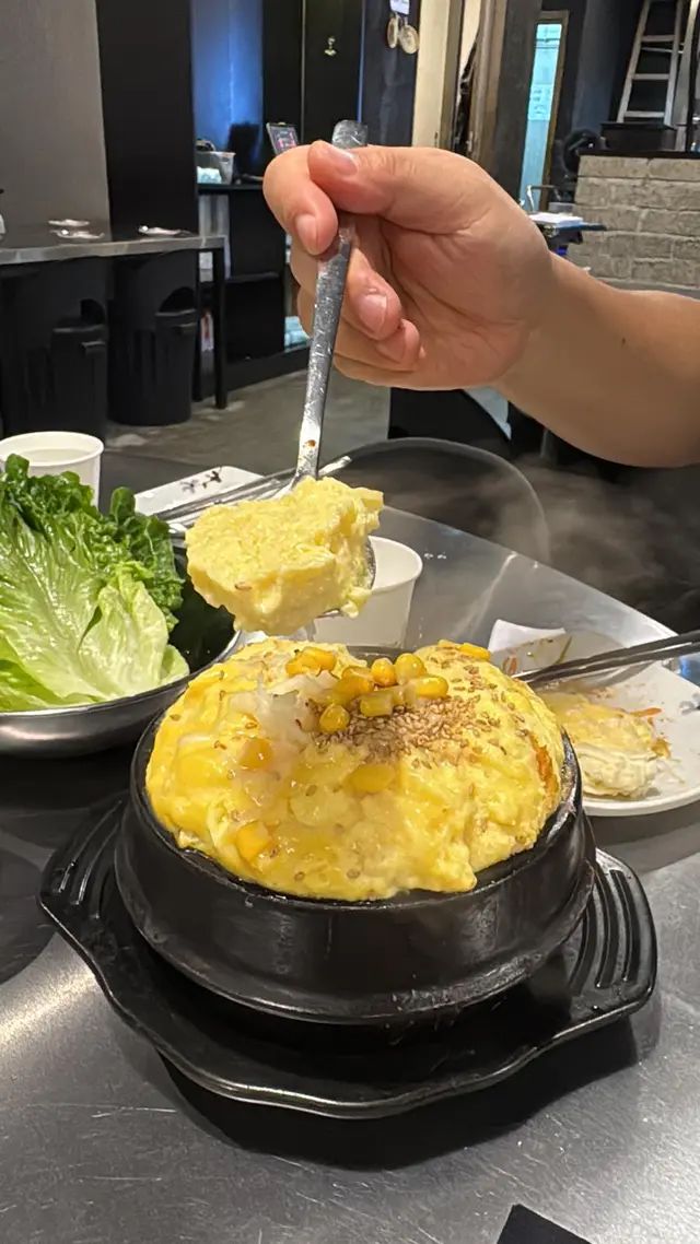 同屋企人嚟荃灣呢間韓國嘢食燒肉,我哋嗌咗一個套餐成為$10XX,夠飽。雞蛋羹:賣相吸睛,有芝士同粟米,口感嫩滑,好似疏乎厘咁,吃過返尋味。泡菜煎餅:外表鬆脆,有豬肉泡菜烤肉:最好嘅係有人幫我哋燒,裏面有豬梅花肉、五花肉、豬頸肉、豬皮。其中我最鍾意嘅係豬嘅梅花肉同埋豬皮,梅花肉加埋生菜,再加啲醬料味道不錯。豬皮煎得好香,煎到燶燶哋,非常惹味。另外有好多唔同嘅配料免費添加,例如菠菜、年糕、芽菜、泡菜等等。整體嚟講都值得一試。查看更多