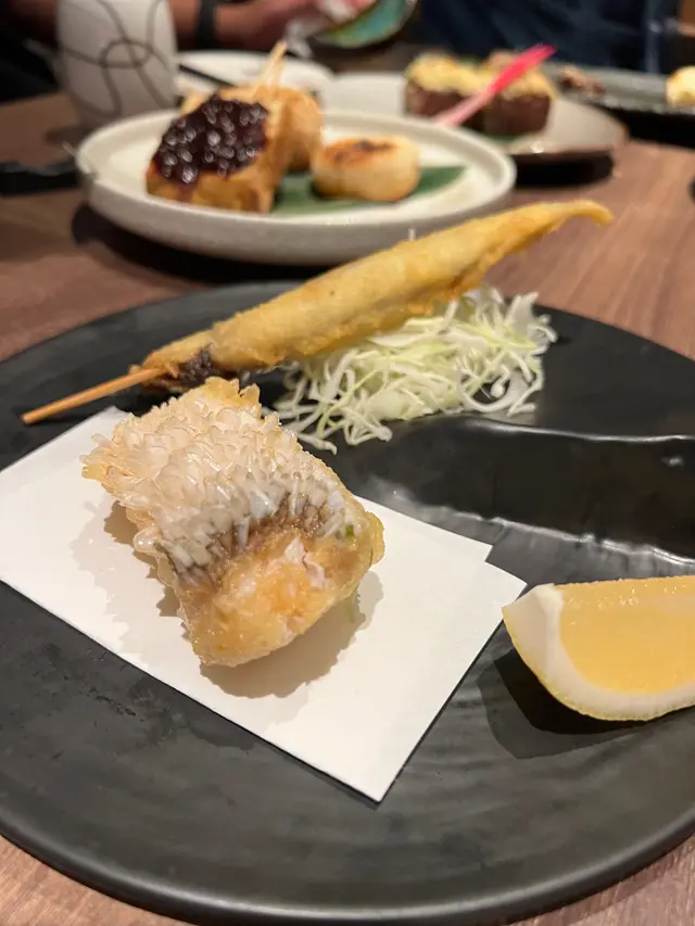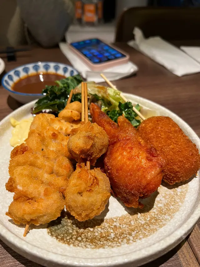 呢間日式居酒屋位於亨環天后,位置離天后港鐵站很近,非常方便。餐單有燒物及炸物,不過串燒選擇唔多,可能要專注食物質素吧!亦因如此,食物燒得好惹味,牛舌和生蠔好好味,特別出色!餐廳推介文化燒牛脷,份量不多,$108亦有點貴,不過製法特別,外面有層燒過的芝士炸粉,有鹹香味,內裡像燴牛脷口感,軟腍的。餐廳環境寧靜且私隱度高,唯一煩惱就是坐近露台就要食二手煙喇!期間不斷有食客出出入入吸煙,我們要不斷關露台門,呢點就要扣分呢!…查看更多
