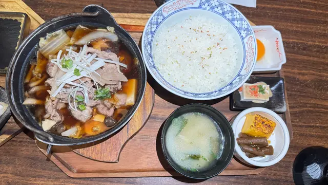 又嚟申子居酒屋食lunch! 就算系假日佢哋餐牌依然有6折优惠,今次同样点咗个人最爱嘅寿喜烧,食物份量非常足够同好丰富,食得好满足🏮寿喜烧 (牛肉)可以拣牛肉/豚肉,以定食形式上菜,除了主菜寿喜烧,仲有面豉汤同小食,是日有胡麻豆腐同烧鲭鱼&玉子! 寿喜烧锅内好足料,有牛肉、金菇、豆腐、菜同粉丝等,牛肉沾上蛋浆口感更滑嫩,食材沾满寿喜烧汁味道香甜,还配有珍珠米饭食,非常丰富🏮咖哩炸鸡定食炸鸡件热辣香口,外皮脆卜卜,肉质嫩滑多汁,另有日式咖哩汁,用嚟捞饭食一流,而且有一大碗可以任点任捞都够食🏮极上盐烧牛舌芯牛舌芯烧得好香口,质感爽弹亦多汁,伴碟有岩盐、芥末酱同柠檬可以点