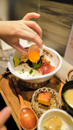 法包烘得脆口,面层涂得满满鸡肝酱,又浓又香,有种丰腴感。最大亮点喺摆上一大粒梦王蛋蛋黄,色泽呈深橙而有光泽,半凝半固,落落蛋味香浓,口感绵绵,极之有趣。